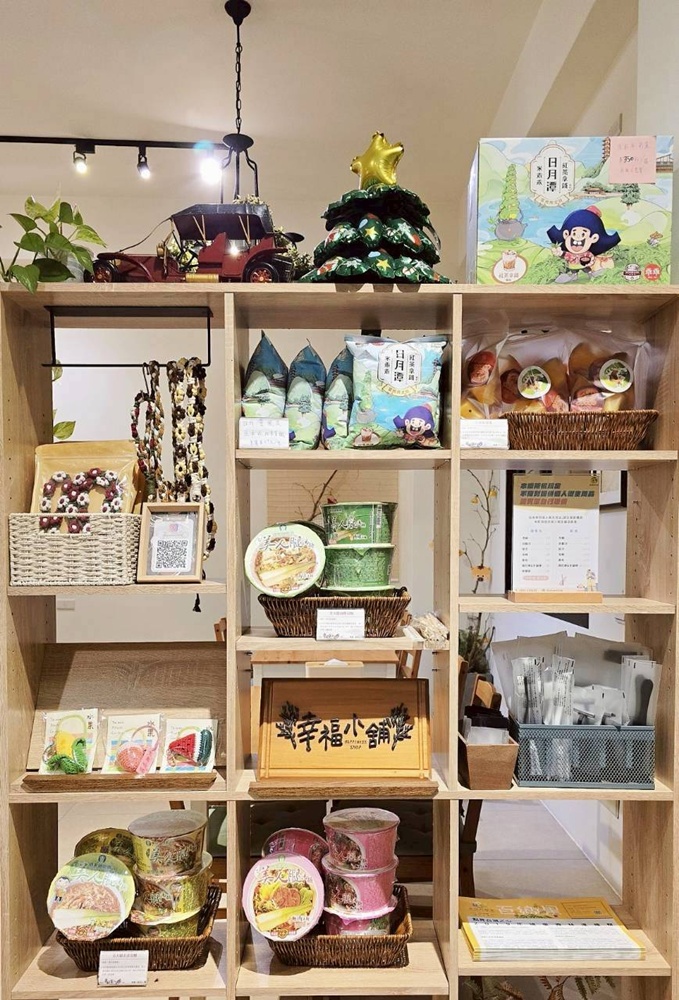 擺放的嚴選小物都是埔里的好伴手有筊白筍泡麵、百香果果凍、日月潭米乖乖以及手作品,當然如果你真的忘了帶一次性備品,這邊也可以選購!