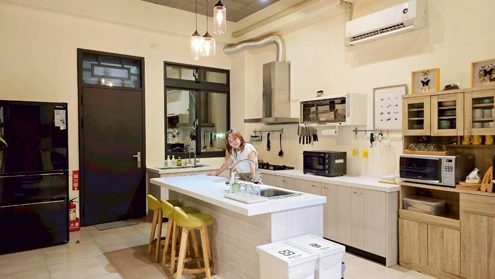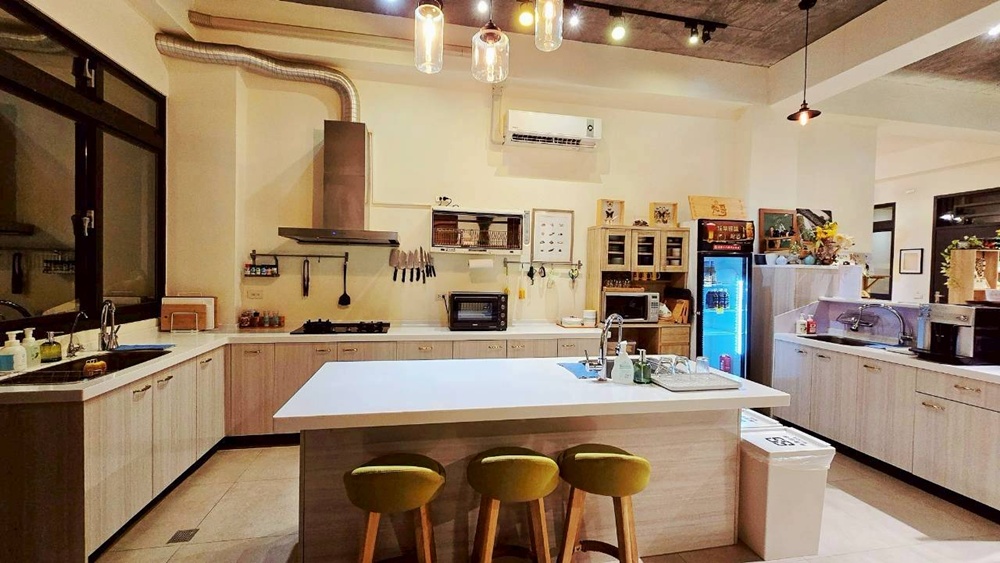 民宿的一大亮點就是這個有中島的開放式廚房。房客不管是想自己下廚,還是把外面買回來的美食擺盤享用,都超方便。碗盤、杯子、刀叉、筷子通通幫你準備好,冰箱裡甚至還有冰塊可以用。最棒的是,你可以在這裡把簡單的餐點變得更有儀式感,和朋友或家人一起動手準備,邊聊天邊享受美食的氛圍,超有度假感。