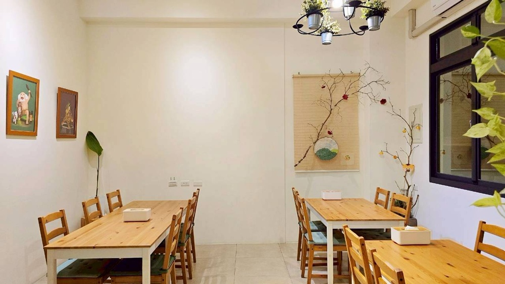 早餐的用餐區域布置得很簡單清爽,木質桌椅帶來溫暖的感覺,搭配牆上的小畫作和乾燥枝葉裝飾,氛圍輕鬆又舒服。