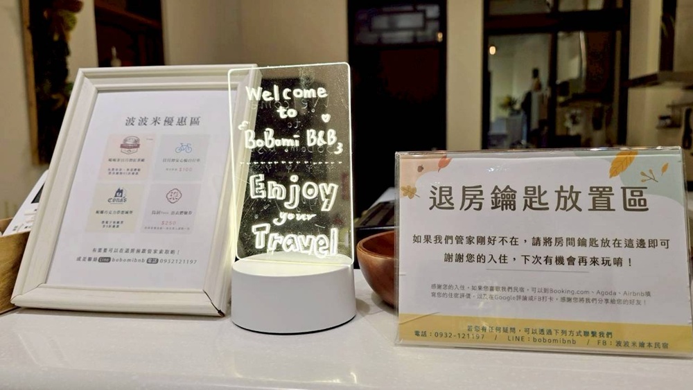 另一頭的櫃檯上有著波波米優惠區可以參考,令如果管家剛好不在,你要離開前可以先將鑰匙放在這裡喔!