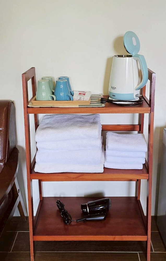 房間內必備的茶包、熱水壺、大小毛巾、吹風機通通有!