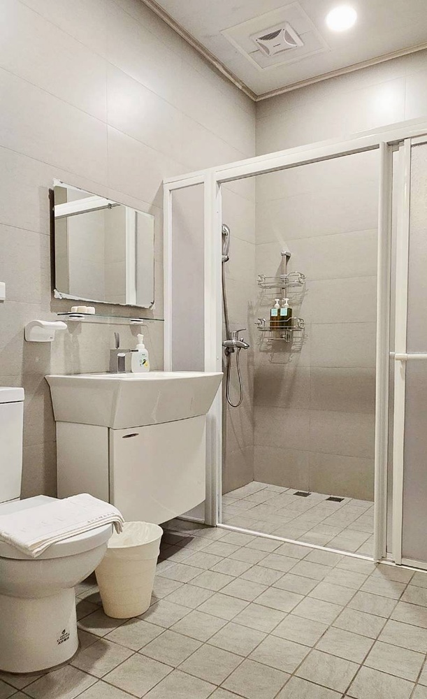 比較特別的是熱水器為儲水式熱水器,建議每人洗澡間隔15分鐘。