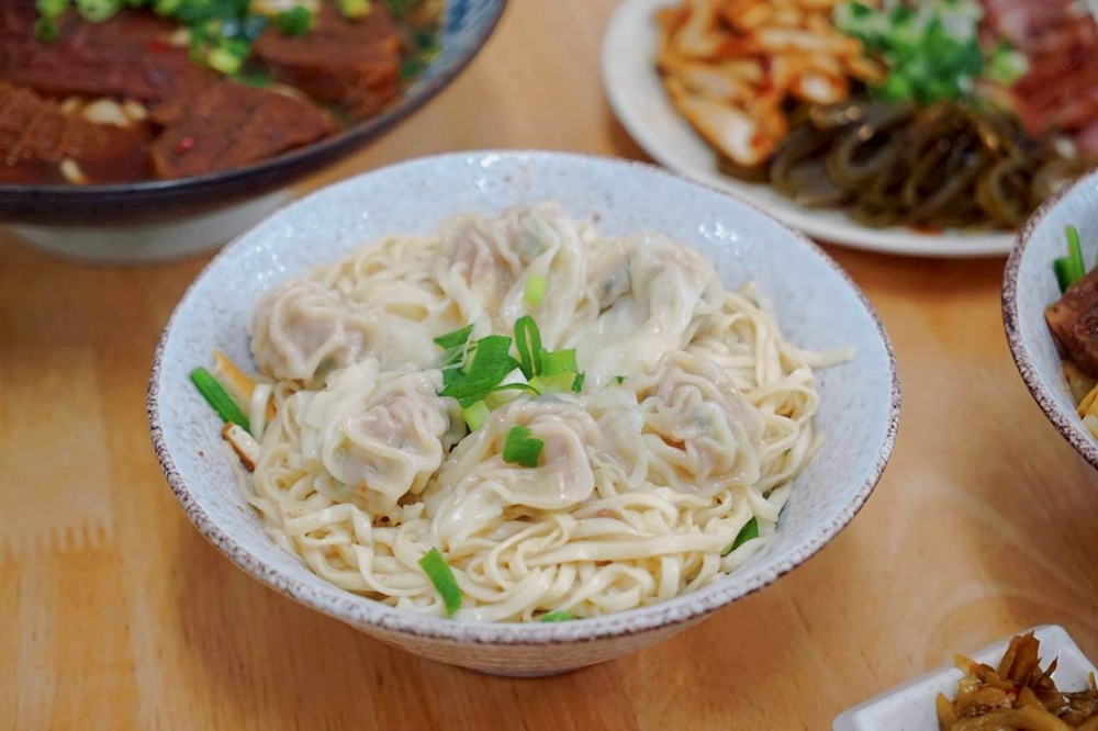 餛飩麵(乾、大碗)小涼選了陽春麵來搭配。不吃牛肉的朋友,除了常見的麻醬麵選項外,這一碗真的很值得點來試試。店家手工包的餛飩顆顆紮實,皮薄餡香,拌開乾麵時才發現,裡頭竟然還藏著切絲的豆干,多了份豆香與口感層次,陽春麵條滑順又帶點彈性,整體吃起來是熟悉又讓人懷念的古早味。