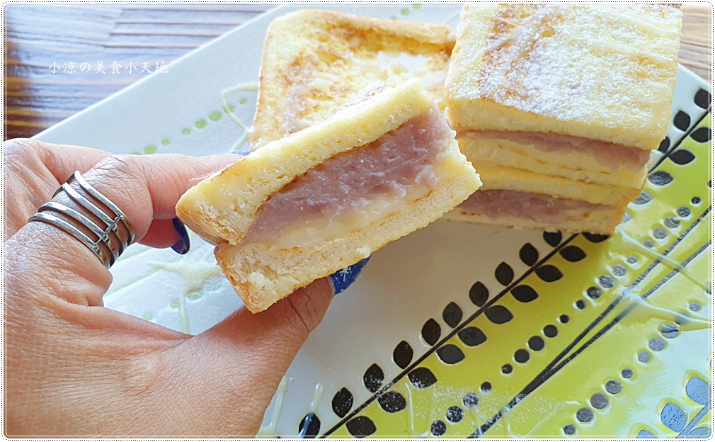 吐司的柔軟加上蛋香真的好好吃,加上內餡給的芋泥超厚實又綿密、並結合卡士達醬,吃起來清爽,會建議點一份兩人分食嘟嘟好!!