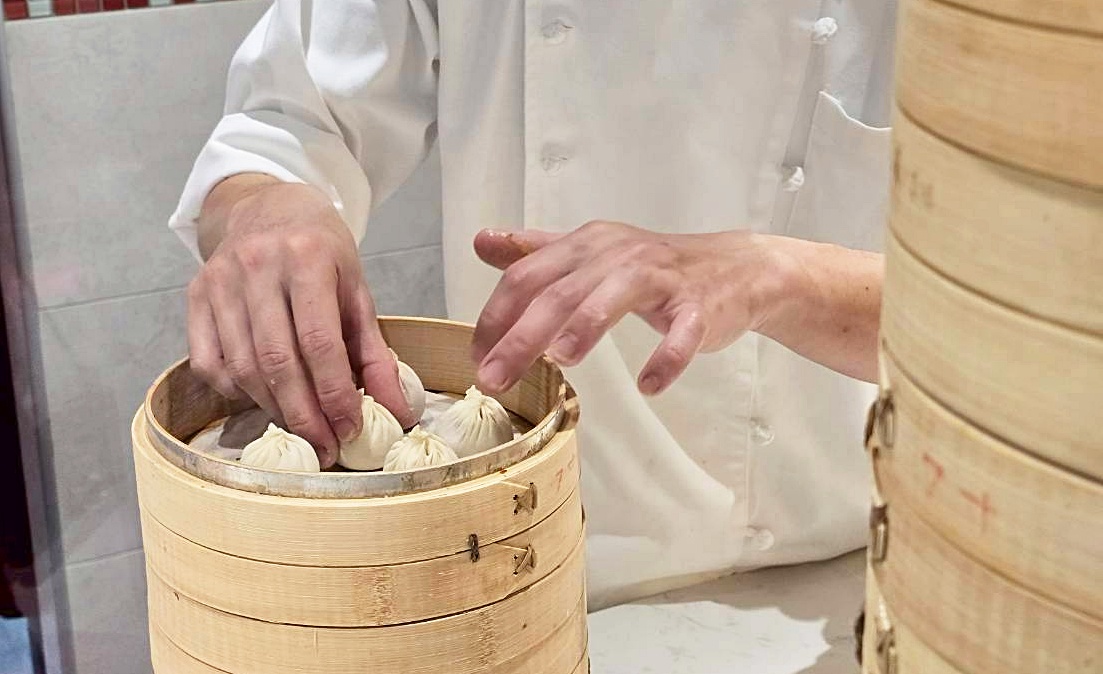 還沒走進店裡,就會先被一旁的透明櫥窗吸引住目光,師傅們現場桿皮、包餡,一顆顆湯包在手中快速成形,而且人家這小籠湯包可是講究到有18摺,看著師傅熟練地一捏一摺,摺得又美又整齊,真的會讓人忍不住多看幾眼~整個製作過程通通看得到,不只療癒,也讓人更期待等等那一籠熱騰騰上桌的瞬間!