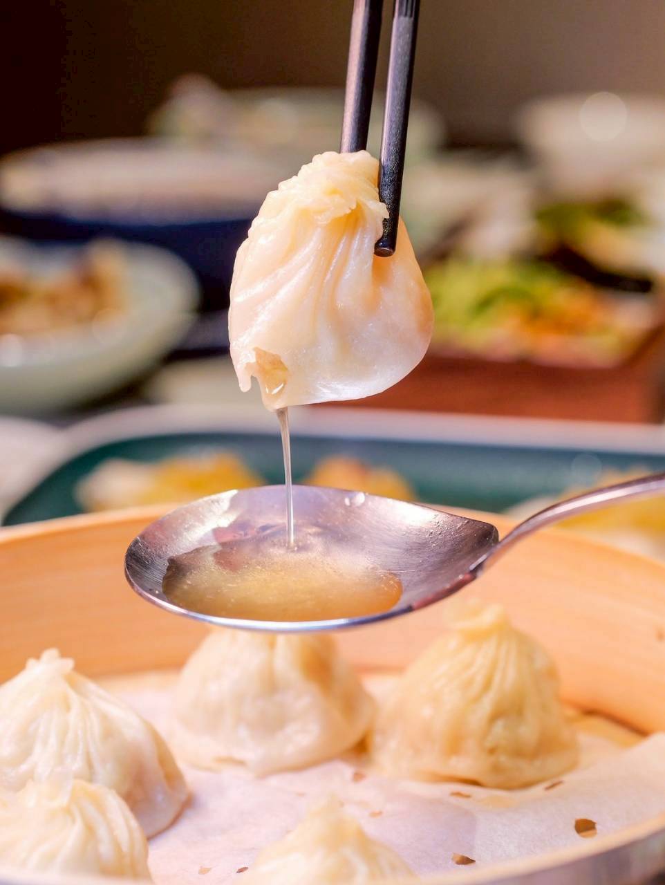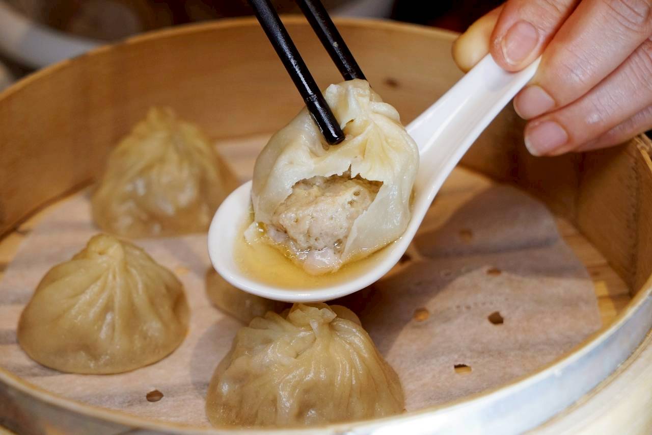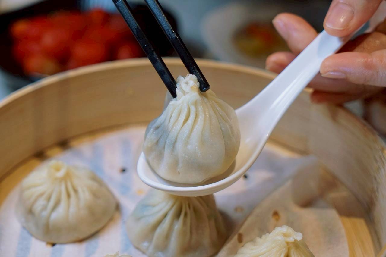 來一張超亮版的邪惡小籠湯包照!輕輕咬開薄透的外皮,裡頭湯汁直接「爆」出來那種毫不留情的流淌感,真的會讓人邊拍邊心疼,但又不得不說要不是還要拍照,這種熱騰騰的瞬間,真的很容易一口就消失。
