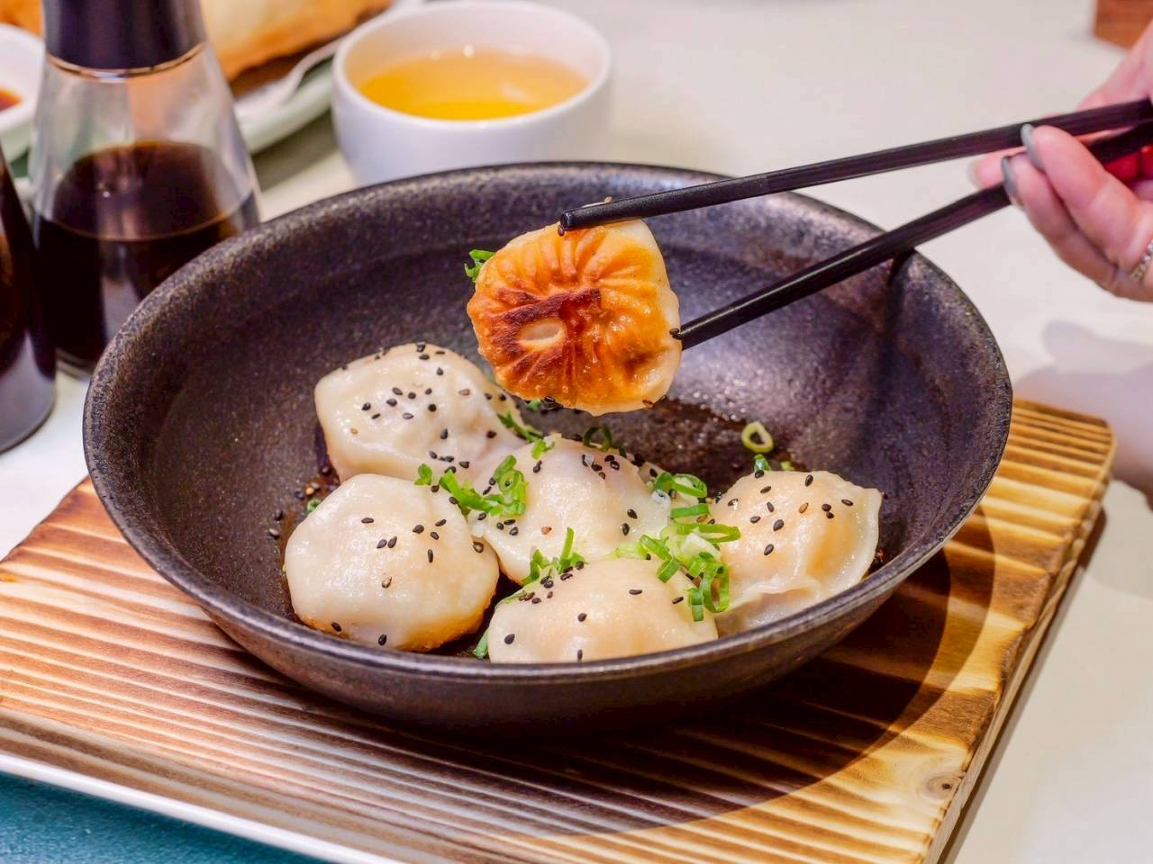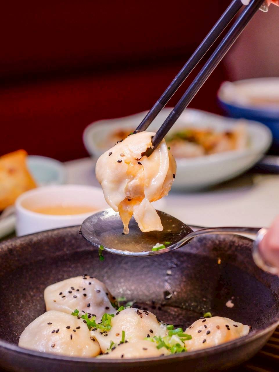 底部煎得恰恰的很加分,是我很愛的那種微酥口感,越咬越香。整體一口咬下,湯汁先在嘴裡流開,再帶出蝦肉跟肉餡的鮮甜結合,真的就是一個字”鮮”啦!