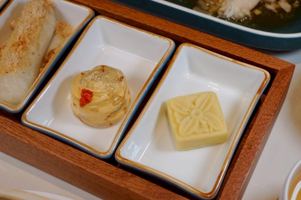 蜂蜜桂花凍則是清爽系,帶淡淡桂花香與蜂蜜甜味,很解膩;最後綠豆糕走的是細緻綿密路線,是姊妹的心頭好。