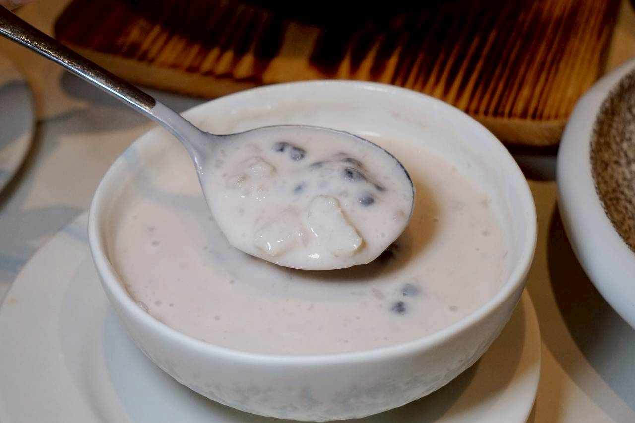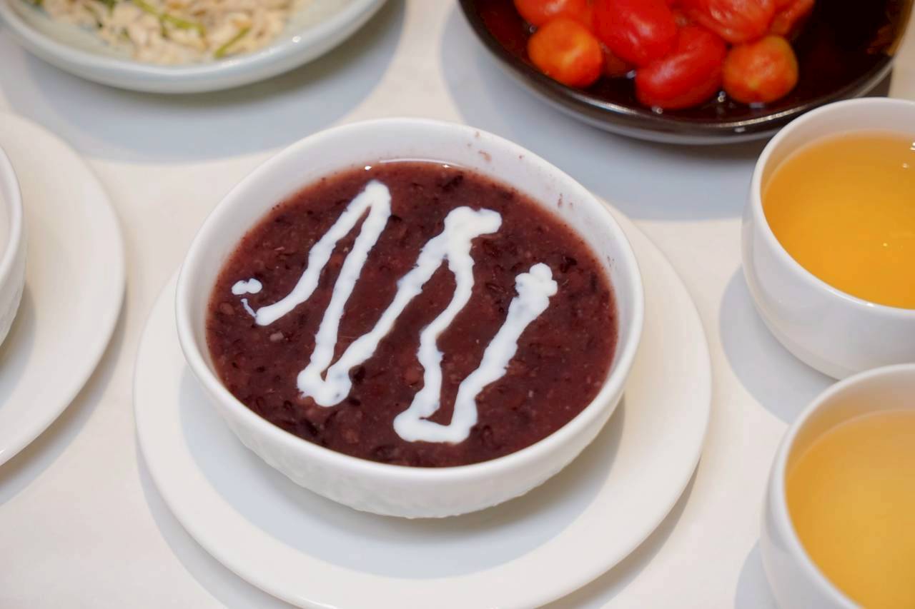 紫米紅豆湯,紫米是那種軟軟帶點Q度,紅豆則是煮到很綿,且不會太甜膩。
