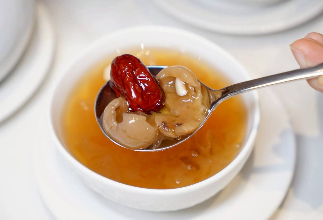 桂圓銀耳湯是小涼很推薦拿來當收尾的甜品之一。裡面主要是紅棗、桂圓搭配銀耳,甜度是微糖左右,喝起來不會甜膩。銀耳本身軟Q又滑順,帶點膠質感,配上桂圓和紅棗的淡淡甜香,整體就是清爽又舒服,加上是冰涼的風味更得我心。
