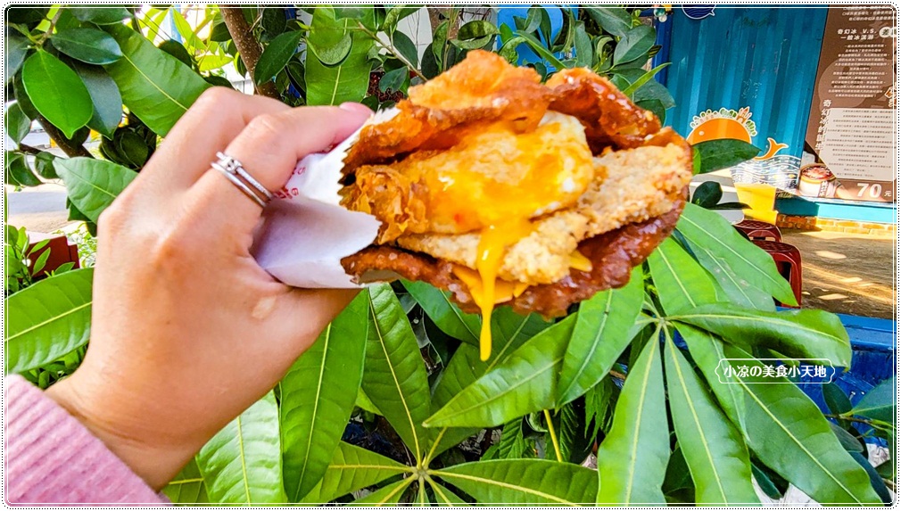 吃炸吃肉吃蛋也要青菜來相配,那半熟蛋宣洩在沙拉上更是潤滑好吃,脆嫩的生菜加上酥香的餅皮超美味,而且明明用炸的,吃起來卻沒有油膩感,真的太神奇了! 咬到中間結合了雞排的酥嫩肉感更是多了層次風味,每一口都有著驚喜,想不到這樣的組合可以那麼好吃,就連70幾歲的阿姨也超愛!!!