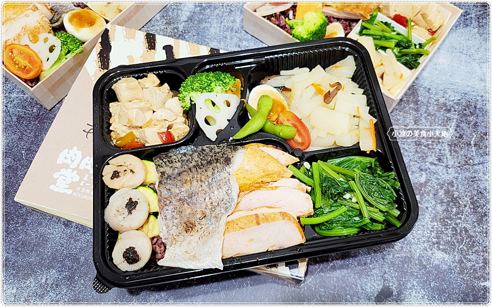 金目鱸魚給的量不算少,而且沒有擔憂的土味,魚肉嫩又鮮,小涼個人很喜歡!! 偶爾來個健康餐盒換換口味也挺不賴的,但我必須老實說這紫米飯真的不是我的菜,還好我家麵麵幫我吃光光,小孩還是需要更多的營養啦XD 肉肉堂就推薦給想要吃低脂、低GI、吃健康的大家囉!!!