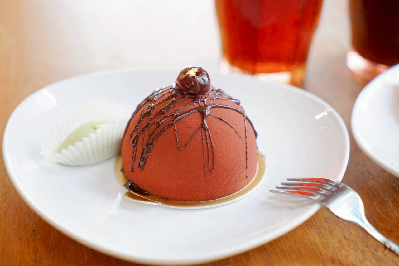 這款酒釀櫻桃蛋糕走濃郁系!生巧克力加上苦甜慕斯與蛋糕體,還有淡淡酒香提味,吃起來不會膩,層次也很有感。