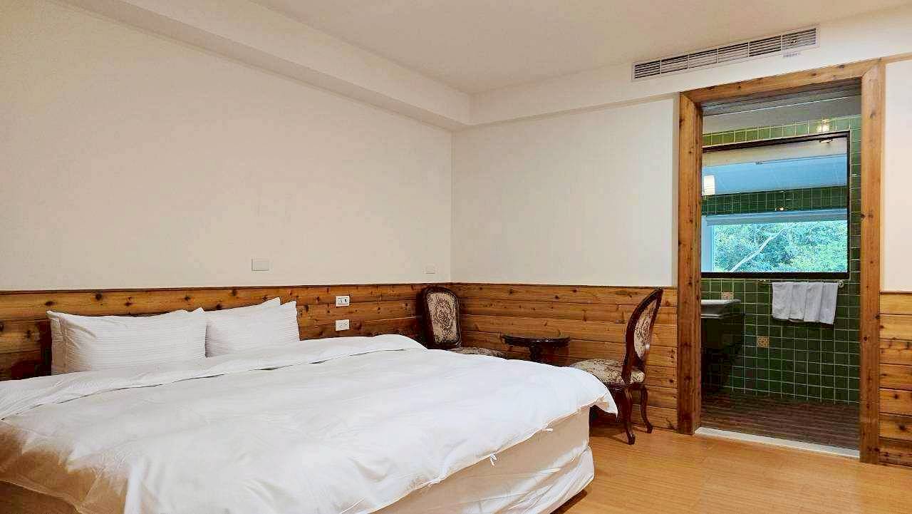 窗外綠意環繞,可以看到園區景致,早晨的陽光灑進房間,或傍晚夕陽透過窗子投射的暖光,都讓整個空間瞬間充滿療癒感。