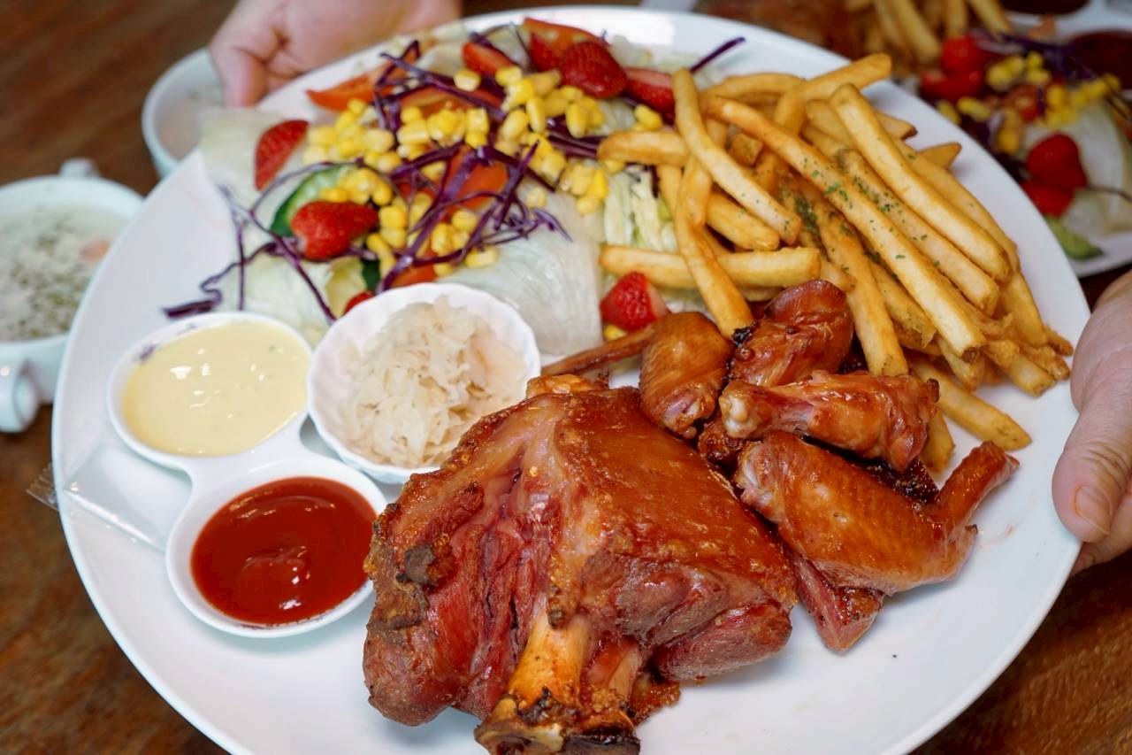 歐風雙人烤盤,份量真的非常十足,兩個人吃完全超滿足。煙燻雞翅腿 味道濃郁、肉質軟嫩,煙燻香氣迷人