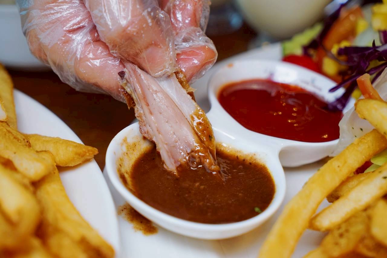 最特別的部分是 巧克力醬,可以沾取春雞或薯條一起吃,帶出微甜與巧克力的獨特香氣,增添整道料理的層次感,卻不會搶掉食材本身的風味。這道料理香氣十足、口感多層次,真的來巧克力雲莊一定要嘗試。