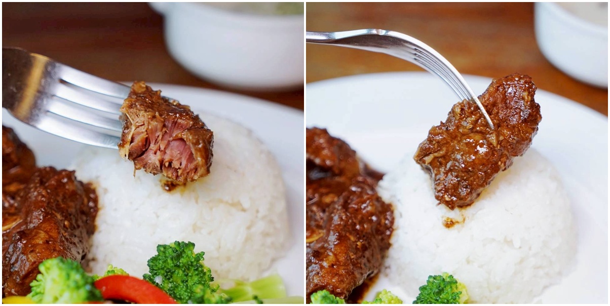 另外一道人氣招牌料理是 巧克力紅酒牛腩。這道料理選用軟嫩的牛腩,經過慢火燉煮,肉質入口即化,牛肉香氣與紅酒的濃厚風味完美融合。加入巧克力的調味,帶來微微的甘甜與深層香氣,整個是超下飯。