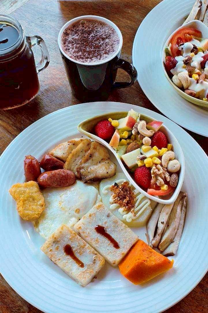 一早在滿滿綠意中醒來,真的會讓人心情特別好,整個人都放鬆了起來,完全沒有平常趕時間的壓力。慢慢準備好後,就這樣散步去餐廳吃早餐,連走路的步調都變得好悠哉。