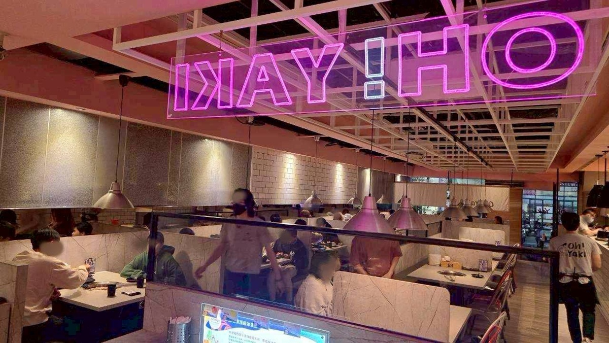 平日晚上來用餐,店內的人潮其實還不少,可見 Oh!Yaki 精緻燒肉吃到飽的人氣真的不容小覷。整體空間走的是明亮又帶點時尚感的設計,最吸睛的就是上方那個粉紫色的 Oh!Yaki 霓虹燈招牌,讓整個用餐環境多了幾分年輕活潑的氛圍。