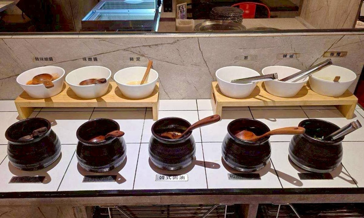 醬料的部份也很齊全,從辣味噌醬、味噌醬、蒜泥、蔥花、辣椒、檸檬、芥末燒肉醬、日式燒肉醬、韓式醬油、和風果醋醬及蔥鹽選擇相當多,但這一次小凉都沒有使用到這邊的醬料,因為我發現肉的品質好,只要單純的撒上桌上的玫瑰鹽就好好吃囉!!