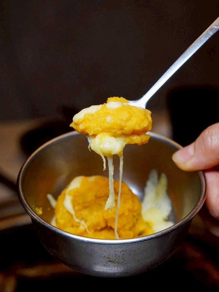 如果鹹食吃到一半想換個口味,小涼通常都會先點一份奶香起司地瓜來墊墊胃。建議一定要把地瓜和起司稍微拌一拌再吃,讓地瓜本身的自然甜香,慢慢牽起濃郁又邪惡的起司香氣。入口是綿密細緻的口感,甜中帶著濃厚奶香,層次意外地迷人。