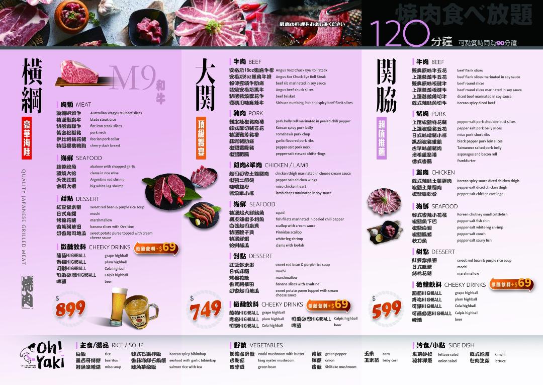 Oh!Yaki 精緻燒肉吃到飽菜單與價格: