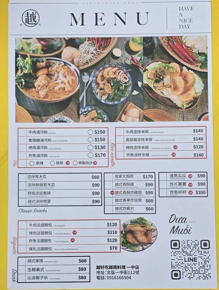 走在一中街熱鬧的巷弄裡,突然被一台文青感滿滿的攤車吸引目光,這就是《越好吃越式料理》一中店。主打越南風味料理,不管是想外帶回家慢慢品嚐,還是在店外的戶外用餐區享受街邊氛圍都很適合。最近店家還新增了好多新菜色,從經典河粉到炸物、法國麵包,還有多款酥香炸物,每一樣都讓人忍不住想立刻嚐鮮,整個味蕾都被異國風情喚醒。
