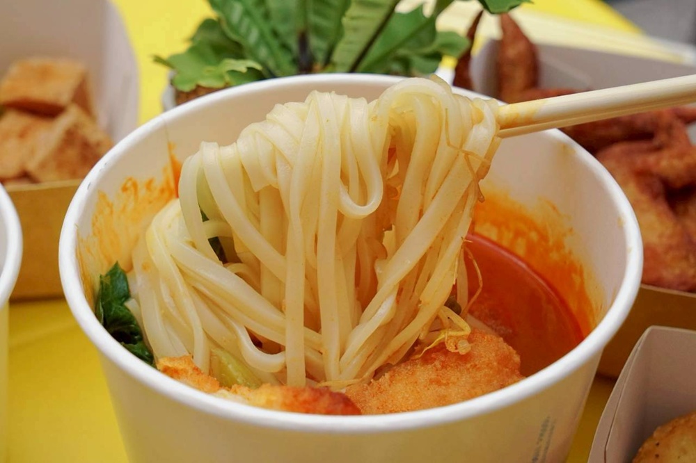 河粉的口感軟嫩中帶點彈性,吸滿叻沙湯汁後變得更加滑溜順口,每一口都是濃郁香氣在嘴裡散開的舒服滋味。份量也給得大方,河粉多到吃到最後還真的有種被幸福撐飽的感覺。