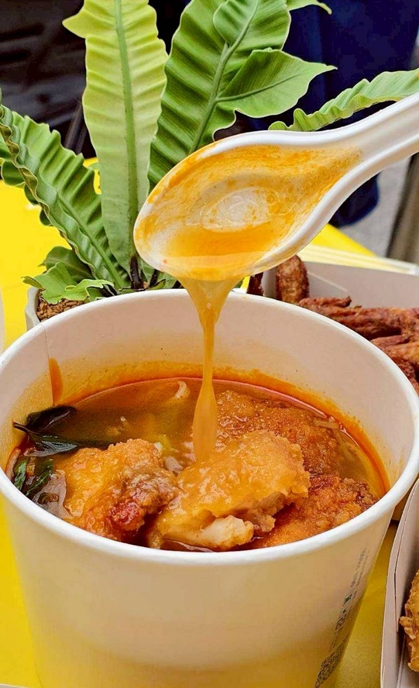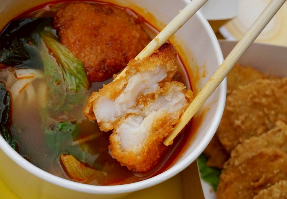 選用無發泡、厚實飽滿的多利魚,外層裹上特製炸粉下鍋油炸,金黃酥香的口感一入口就很加分。放進濃郁的叻沙湯裡後,魚肉吸滿湯汁,香氣更往上一層,整體風味也變得更加迷人,是這碗叻沙裡讓人忍不住多挖幾口的亮點料理。