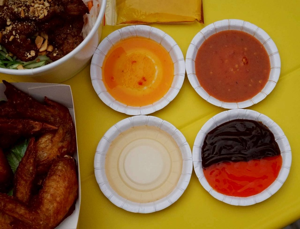 雖然說一中店是攤車,但該有的越好吃店內的調味醬料這邊通通都有喔!少不了特製辣醬、特製魚露、越南海鮮醬、海鮮酸辣醬、水果沾醬等等~~