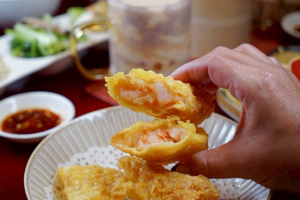 千張黃金蝦捲是有春茶館這次新菜之一,外層金黃酥脆,內餡包著鮮甜的蝦肉,吃起來帶有層次感。